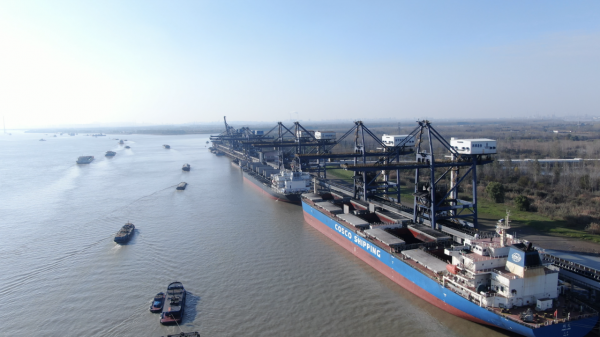 據(jù)了解,南京西壩碼頭位于長江北岸國家級重點化工基地——南京化學(xué)工業(yè)園區(qū)內(nèi),是南京市江北地區(qū)唯一的5萬噸級以上散貨碼頭,港區(qū)內(nèi)公、鐵、水路匯集。岸線總長1330米,擁有1個5萬噸級、4個7-10萬噸級散貨泊位,設(shè)計年接卸能力3000萬噸,吞吐能力5000萬噸,陸域堆場面積83萬平方米,一次性煤炭堆存量可達(dá)300萬噸。