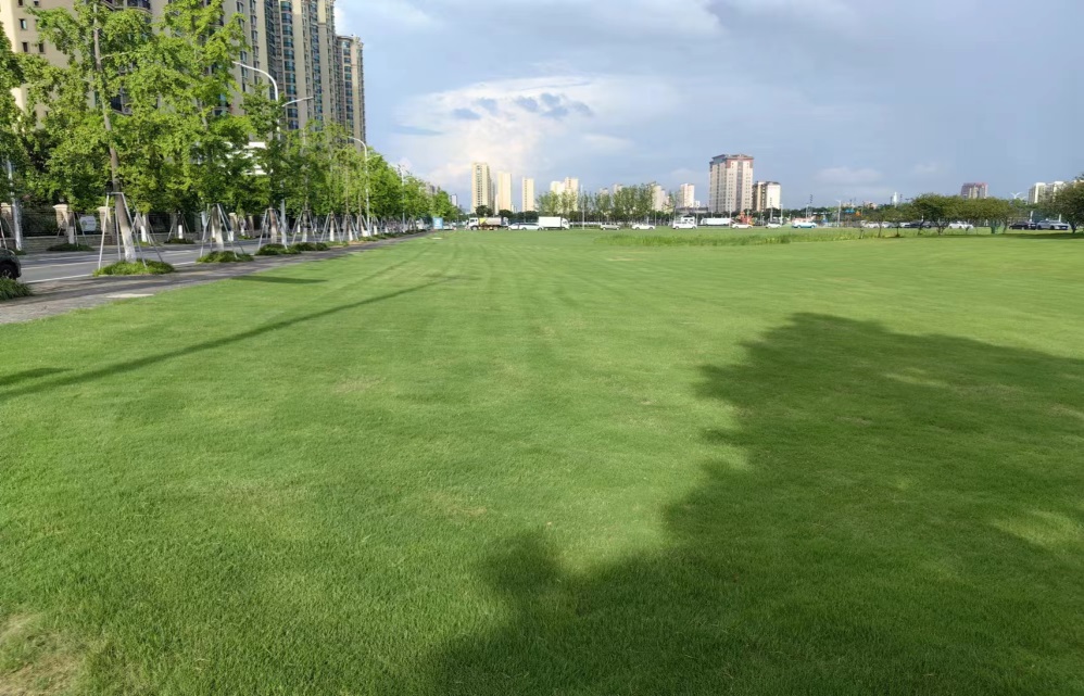 增加灌溉“保綠”,科學澆水潤綠地。采取定時、定責、定地塊的工作方法,用水泵抽灌的方式進行澆水。澆水時間控制在上午9點之前和下午4點以后,最大限度減少水分蒸發(fā),及時供給草坪所需水分。