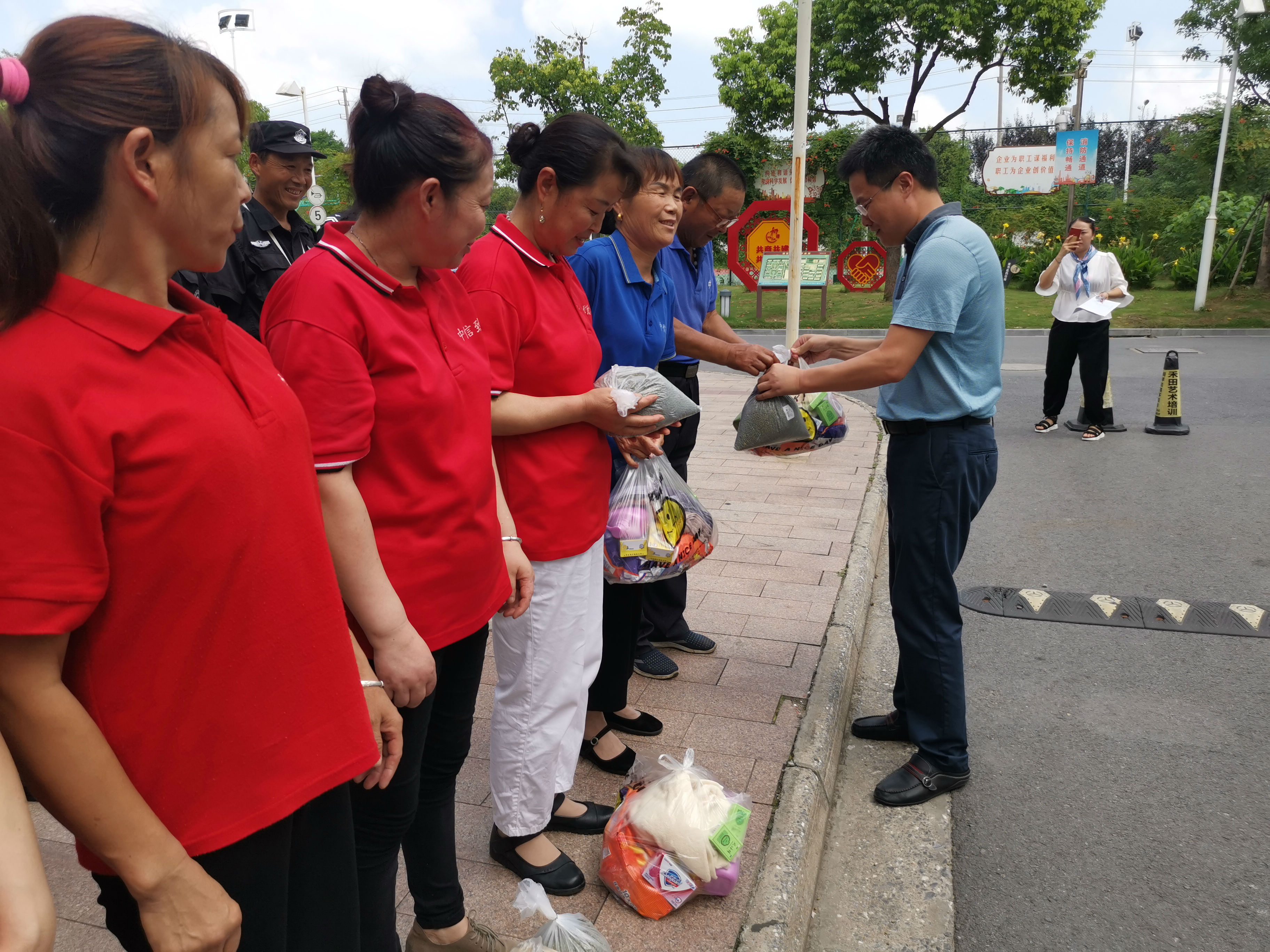 8月9日,公司副總經(jīng)理倪松對(duì)奮戰(zhàn)在一線(xiàn)的保安、保潔及綠化養(yǎng)護(hù)崗工作人員進(jìn)行了慰問(wèn),為他們送去了防暑降溫物品及公司的關(guān)懷。