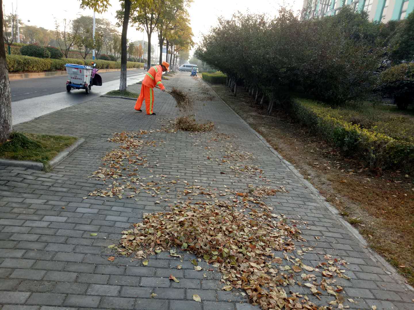 為了切實做好落葉清掃工作,公司及時調整工作方案,將人工清掃和機械化清掃相結合,對落葉相對集中的路段進行重點清掃、巡回收集,并增加清掃頻次,減少落葉落地時間,并要求清掃的落葉要及時袋裝化、統(tǒng)一處理,嚴禁焚燒落葉和隨意傾倒落葉現(xiàn)象,確保落葉季節(jié)園區(qū)環(huán)境衛(wèi)生水平得到良好保障。