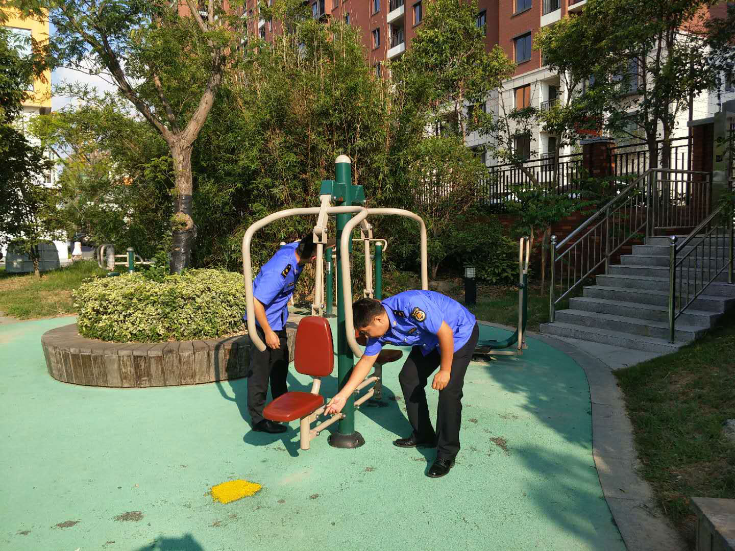 為排除健身器材存在的安全隱患,近日,市政物業(yè)部開(kāi)展戶外健身器材安全檢查專項(xiàng)行動(dòng),切實(shí)為廣大居民群眾營(yíng)造安全放心的健身環(huán)境。