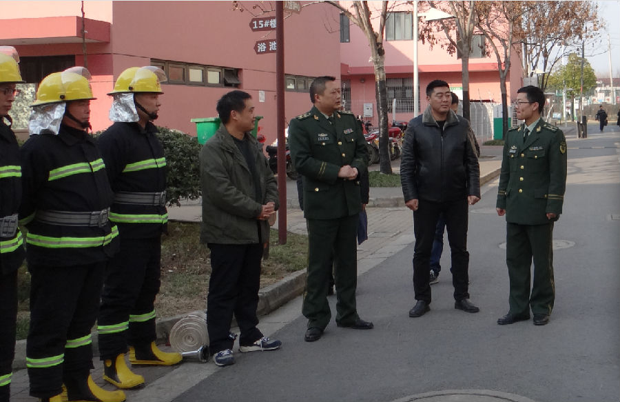 1月16日,宿遷市消防支隊(duì)防火處處長(zhǎng)經(jīng)賢華、宿遷市宿城區(qū)消防大隊(duì)大隊(duì)長(zhǎng)楊圣林一行人蒞臨園區(qū)公舍,對(duì)我司2016年的消防安全建設(shè)工作做年終考評(píng)。