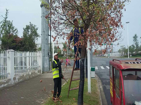 據(jù)公司綠化管理工作人員介紹,受凍的香樟要針對香樟受凍程度不同提出不同的恢復措施:輕度危害的使用藥物進行調節(jié)植物自身代謝,恢復植物細胞活性;中度危害要根據(jù)情況進行枝葉修剪;重度危害必須進行強修剪,甚至截桿,以利于從截桿處重新長出新枝,并通過肥料提供香樟所需養(yǎng)分,改善根部生長環(huán)境。